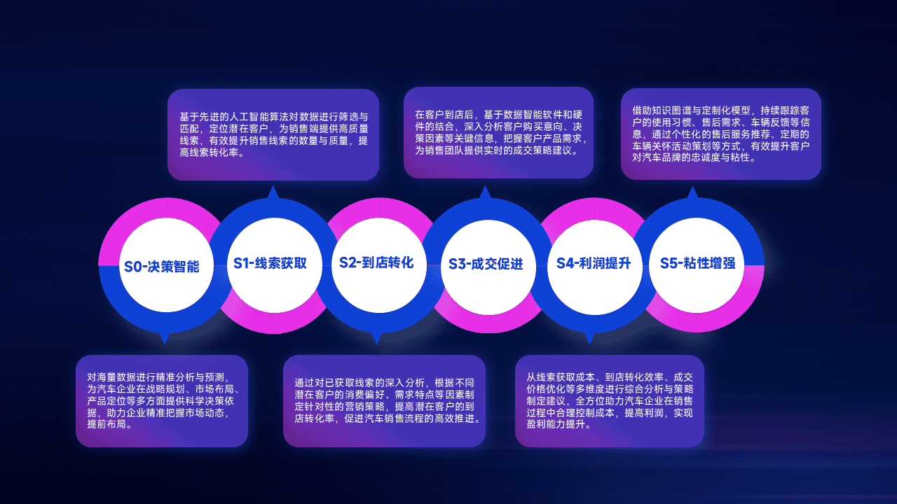 通过拓宽潜在客户来源、、优化线索分配并提高到店转化率,,,以增强销售效率。。同时,,利用线索数据不断优化分析模型,,,有效提升转化率,,,扩大营销影响力。。。